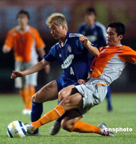 | 2005年5月25日晚,亞冠聯(lián)賽E組小組第6輪賽事在深圳展開,背水一戰(zhàn)的深圳健力寶隊(duì)主場迎來小組勁敵韓國水原三星隊(duì)。比賽中,憑借一粒李瑋鋒助攻忻峰的入球,深圳健力寶隊(duì)最終以1比0力擒水原三星隊(duì),搶占E組頭名,繼F組魯能6戰(zhàn)6勝晉級后也獲得亞冠聯(lián)賽八強(qiáng)的資格,這也是首次有兩支中國球隊(duì)殺入亞冠聯(lián)賽八強(qiáng)。作者:吳峻