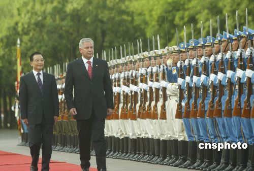 圖:溫家寶歡迎克羅地亞總理薩納戴爾訪華
