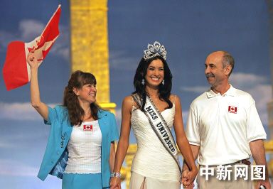 5月31日,環球小姐總決賽在曼谷舉行。加拿大小姐Natalie Glebova獲得冠軍。圖為加拿大小姐與家人分享快樂。