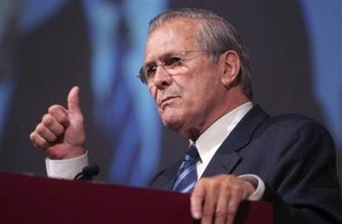 中新網6月5日電 據鳳凰衛視綜合報道,美國國防部長拉姆斯菲爾德4日在新加坡舉行的亞太安全會議上發表演說,批評中國快速發展軍力,國防支出大幅增加,對周邊國家和地區產生威脅。