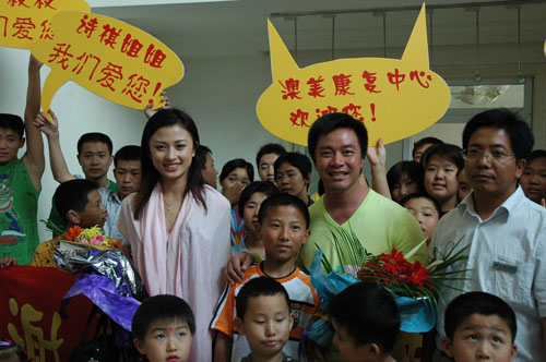中新網(wǎng)6月8日電 6月7日,香港著名導(dǎo)演唐季禮與2004屆鳳凰衛(wèi)視“中華小姐環(huán)球大賽”冠軍李詩(shī)琪一天內(nèi)奔走于津、京兩地的中國(guó)醫(yī)學(xué)科學(xué)院血液病醫(yī)院和北京澳美聽(tīng)力語(yǔ)言研究中心之間,探訪那里的白血病患兒和耳聾的小朋友,呼吁整個(gè)社會(huì)對(duì)這些需要幫助的孩子的關(guān)愛(ài)。