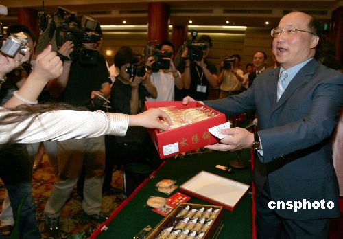 中新網6月9日電 據香港《文匯報》報道,在北京參加2005年世界市長會議的臺中市長胡志強表示,應加強兩岸地方政府間的往來,而“大陸人士赴臺只是時間問題”。另外,胡志強9日還將在北京國際飯店舉行“臺中太陽餅、臺中胡志強”專場記者會,以此向大陸各界推銷臺中。