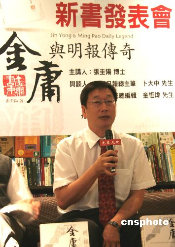 《金庸與明報傳奇》是張圭陽攻讀新聞史博士學(xué)位期間,受金庸先生啟發(fā)和支持,廣搜《明報》歷史資料,加以匯集和論述而成。二○○○年在香港首發(fā)時,該書名為《金庸與報業(yè)》,后因種種原因,其在臺出版事宜拖延,終由臺灣允晨文化出版社于今年六月發(fā)行。