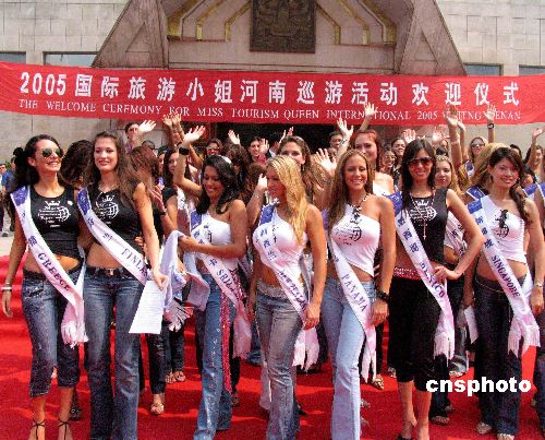 | “二OO五國際旅游小姐中國之旅”河南巡游團暢游中原之行,六月十一日上午在鄭州正式“起程”,河南省政府在河南博物院廣場舉行儀式,歡迎佳麗們的到來。該團由七十五個國家和地區(qū)的七十五名旅游形象大使和二十多個境內(nèi)外媒體組成,從當日起,七十五名旅游大使的“美麗”腳步將暢游錦繡中原,感受黃河風情,體驗中國古老燦爛歷史。圖為“起程”儀式。作者:胡珂
