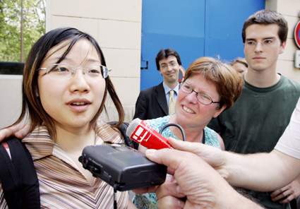 李李走出監(jiān)獄時(shí)顯然很激動(dòng),她說:“我非常高興”。她向前來接她的“男友和他的媽媽、以及其貢比涅大學(xué)的所有的教授和學(xué)生表示感謝”,她說:“他們給了我很多勇氣!