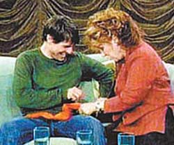 阿湯哥在歐普拉節目上發狂似的亂跳令人傻眼,為了不想阿湯哥失控,另一個脫口秀主持人居然將阿湯哥綁住,接受拷問。