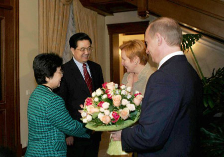 普京表示,非常高興時隔一個多月再次在莫斯科歡迎友好鄰邦中國的領(lǐng)導人胡主席。俄羅斯高度重視發(fā)展同中國的戰(zhàn)略協(xié)作伙伴關(guān)系,兩國在政治、經(jīng)濟等領(lǐng)域的合作取得了很大發(fā)展。今年兩國還將舉行首次軍事演習。胡主席此次重要訪問必將有力地推動俄中關(guān)系進一步向前發(fā)展。