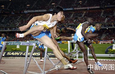 在法蘭西體育場(chǎng)舉行的二00五年度國(guó)際田聯(lián)黃金聯(lián)賽第一站巴黎站的比賽中,法國(guó)短跑“黑旋風(fēng)”杜庫(kù)里以十三秒零二的成績(jī)名列第一,打破了自己十三秒零六的最好成績(jī),一雪雅典奧運(yùn)會(huì)名列第八的恥辱。而獲得過(guò)四次世界冠軍的美國(guó)名將約翰遜以十三秒零四的成績(jī)獲得第二名。杜庫(kù)里賽后表示,他希望在八月舉行的赫爾辛基世界田徑錦標(biāo)賽上再拔頭籌。賽前,劉翔贊賞杜庫(kù)里的節(jié)奏、力量和速度。