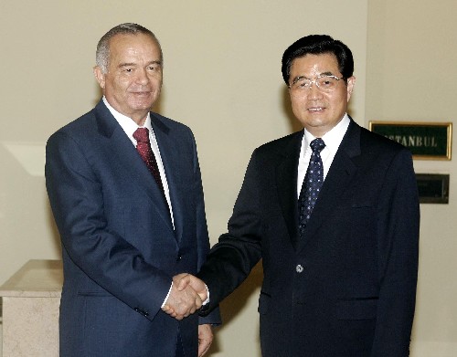 中新網7月5日電 據人民網報道,5日下午,中國國家主席胡錦濤會見了前來出席上海合作組織峰會的烏茲別克斯坦總統卡里莫夫。