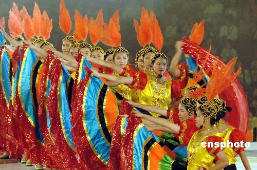 開幕式上澳門特首何厚鏵扳弓射箭點燃圣火