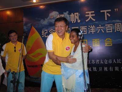 去年8月8日,由鳳凰衛視的四位隊員駕駛的鳳凰號單桅帆船啟程,沿著鄭和寶船的路線去探尋鄭和的足跡。他們于今年3月16日抵達鄭和船隊的終點—肯尼亞,并在當地的探訪中,發現了鄭和船隊水手的后裔、18歲的烏瓦瑪卡•沙里夫,并對她的家庭進行了追訪和報道。