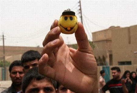 中新網7月13日電 據美聯社報道,7月13日,當美軍向兒童分發糖果時,遭到自殺汽車炸彈襲擊。襲擊造成了至少27人死亡,美國和伊拉克官員稱。一名美軍士兵和大約12名伊拉克兒童喪生。圖為伊拉克兒童在展示美軍贈送的玩具。(春風)
