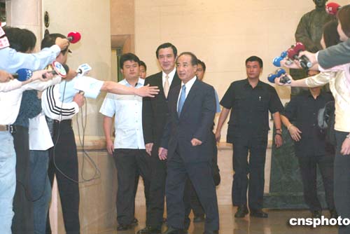 王馬座車上午幾乎同時抵達國民黨,兩人下車握手后,同時進入黨中央。對于媒體的詢問,兩人微笑以對,沒有任何發言。