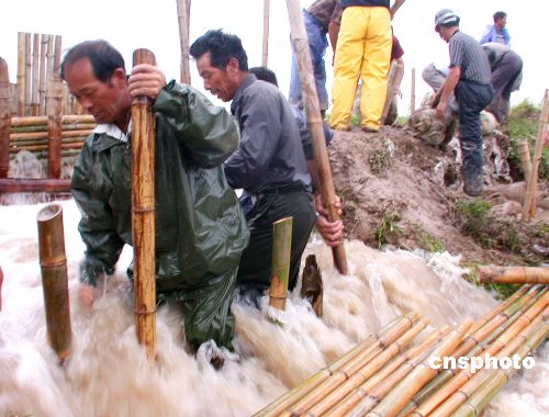 | 7月20日下午3時左右,因受5號臺風“海棠”影響,浙江溫嶺濱海鎮(zhèn)團結(jié)水系和金清水系交界的防洪堤,被沖開3米多長的決口,金清水系倒灌團結(jié)水系,水位落差達1米多,水流洶涌。如不及時修復決口,濱海鎮(zhèn)五灣以東的5萬多畝農(nóng)作物將面臨被淹沒的危險。發(fā)現(xiàn)險情后,該鎮(zhèn)立即組織一支30多人小分隊進行搶險堵缺,經(jīng)過4個多小時鏖戰(zhàn),防洪堤決口終于被堵上。作者:鄭玲富