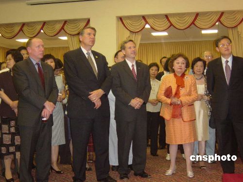 美國退伍軍人事務部長尼科爾森(Nicholson),美國國會眾議院美中工作小組共同主席柯克(Kirk),國會眾議員伊斯突克(Istook)、美國國務院負責東亞事務的高級顧問祁俊文(James Keith),美國政府各部門代表,各國駐美使節代表,華僑華人代表及美國友好人士共約400多人出席了當晚的招待會。