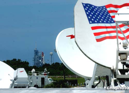 美國眾多媒體已在肯尼迪航天中心架好天線,連續報道航天飛機“發現號”最后的倒計時發射進程。作者:賈國榮