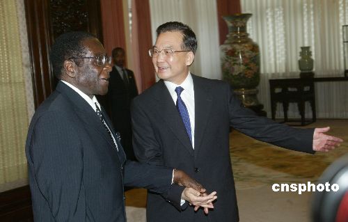 圖:溫家寶會見津巴布韋總統穆加貝