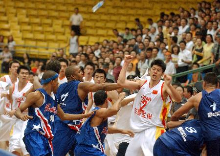 29日晚中國與波多黎各隊的比賽進行到離比賽結束還有1分29秒時,波多黎各隊4號球員曼紐爾對易建聯惡意犯規,結果導致雙方球員在賽場內群毆。國際籃聯最終決定給予雙方全部球員開除出場的處罰,但比賽結果還保留,中國隊91:80獲勝。