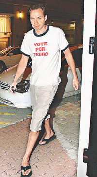 另一邊,“老外新歡”于前晚九時(shí)左右,由所住大廈的走火通道極速步出,然后截的士離去,守候記者未能跟上,傳媒猜測(cè)他會(huì)否到半島酒店會(huì)合柏芝,不過(guò)“老外”所乘之的士后來(lái)折返兜客,司機(jī)向記者透露“老外”于中環(huán)云咸街下車,至十時(shí)四十分,一身街坊look,穿上T恤短褲配拖鞋的“老外”由正門步行回家,他回家時(shí)間與柏芝極為合拍,面對(duì)傳媒拍照他亦神態(tài)自若,還與管理員以普通話打招呼,難怪他可以當(dāng)柏芝的英文老師!不過(guò)記者問(wèn)他:“同柏芝談戀愛(ài)多久了?”他卻不發(fā)一言就急步入大廈。昨晚七時(shí),他召了部的士由寓所出發(fā)往機(jī)場(chǎng),沿途欲擺脫記者追訪不果,抵達(dá)機(jī)場(chǎng)后,記者問(wèn)他是否跟柏芝一同出埠及去哪?他一概不回應(yīng)就入閘離開。但柏芝經(jīng)理人表示柏芝人在香港,在家中休息。