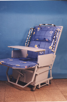 記者了解到,這種“保姆床”仿人體骨髓活動(dòng)的構(gòu)造原理.采用高軸前移、復(fù)合座架和靠背空間弧運(yùn)動(dòng)的連動(dòng)支桿來(lái)保持與人體的活動(dòng)姿勢(shì)相一致,人體坐起時(shí)不易下滑(被動(dòng)下推)和躺臥上蹭,而方便系統(tǒng)是采用鏈條傳動(dòng)、多臂擺動(dòng)、滑道平移來(lái)實(shí)現(xiàn)便口開合,實(shí)現(xiàn)大小便自理。這一產(chǎn)品既可電動(dòng)又可手動(dòng),平放是床,折起是椅。如電動(dòng)出現(xiàn)故障或停電時(shí),產(chǎn)品仍可通過(guò)手動(dòng)裝置繼續(xù)操作,不影響患者的使用,而且采用遙控操作,患者可自己遙控操作,也可由護(hù)理人員在10米內(nèi)遙控操作。操作者不接觸強(qiáng)電,確保使用安全。