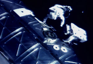 史蒂芬·羅賓遜和野口聰一接著擔(dān)任“裝修工”,把外置攝像機和光學(xué)系統(tǒng)安裝在空間站的支撐架上,之后從空間站外取回實驗盒,再安裝一個新的。