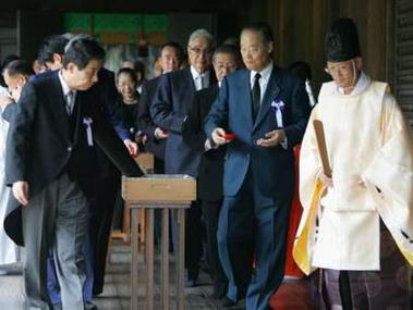 “國會議員參拜靖國神社會”成立于1981年。當地時間今天上午11點,以會長自民黨的前建設大臣瓦力以及自民黨前干事長古賀為首,自民黨和民主黨的國會議員一行共47人參拜了靖國神社。