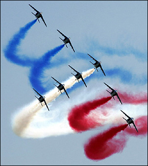 中新網(wǎng)8月21日電 據(jù)法新社報道,在朱科夫斯基舉行的本年度莫斯科國際航空展上,法國空軍特技表演隊“法蘭西巡邏兵”特技飛行表演隊正在展示他們令人叫絕的空中表演技術。