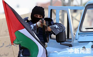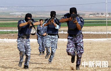 巴勒斯坦警察22日在杰寧進行演習。以色列軍隊即將清除Sanur和Homesh兩個猶太定居點。圖為巴勒斯坦警察演習場景。