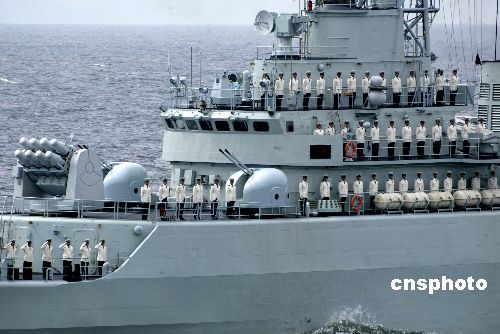 圖:中俄聯合軍事演習的海軍艦艇接受檢閱