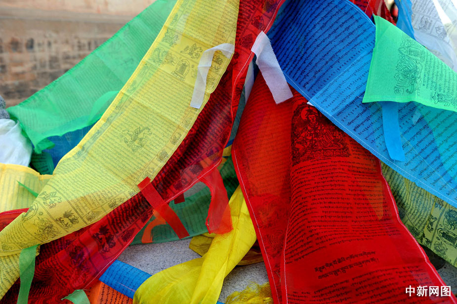 圖為寫滿經文的彩帶。中新網記者 金碩 攝