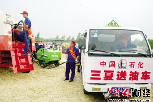 中新網7月12日電 今年“三夏”期間,中國石化承擔起了全國近90%夏糧種植面積機收的供油任務,開展以“保供、保運、保質、保量”和“優惠價格、優質服務”為主要內容的“四保兩優”專項活動,以優質的油品和優良的服務圓滿完成“三夏”供油任務。