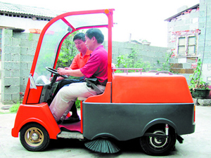 3年來,他們相繼從家中拿出了準備買新房的近30萬元積蓄用于研究。2008年底,經(jīng)過多次改裝和調試,一輛“摩托掃地車”應運而生。2009年暑假,第一代小型電動清掃車終于問世。