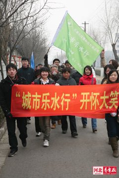 專程從北京趕來參加此次“城市樂水行”活動的張峻峰介紹說,目前全國已經有十多個城市開展了這一新潮的健身活動。今年3月份,他們還將計劃由京津冀的志愿者共同結伴,沿著三地的南水北調徒步行走,在考察水環境的同時,健身、健心、健智,達到人與自然和諧。