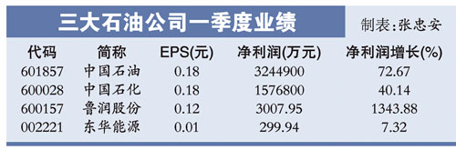 按照國際會計(jì)準(zhǔn)則,一季度中石油實(shí)現(xiàn)凈利潤325億元,同比增長71%。中石化凈利潤同比增長近40%,達(dá)158億元。中海油雖未公布一季度業(yè)績,但油氣凈產(chǎn)量達(dá)6730萬桶油當(dāng)量,同比大幅增長32%。