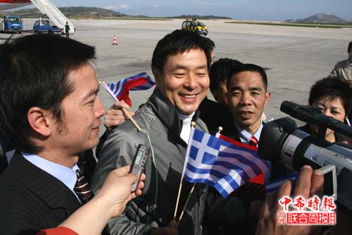 組圖:北京奧運圣火交接代表團抵達雅典(4)