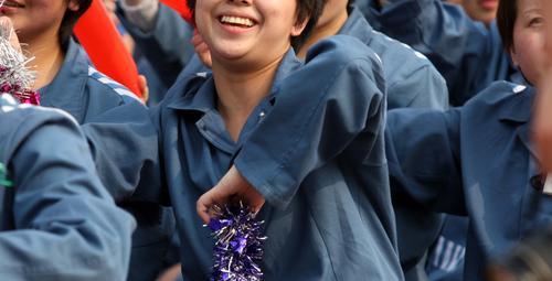 2008年5月6日,北京某監獄,由服刑人員自制的祥云火炬在各監區傳遞。女犯的笑容。