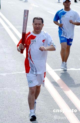 中央電視臺(tái)副臺(tái)長孫玉勝在吉林長春傳遞奧運(yùn)火炬。中新社發(fā) 廖攀 攝