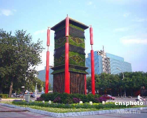 7月下旬,一個高達六米左右的“宮燈”奧運花壇聳立在北京民族文化宮前。隨著北京奧運會的臨近,充滿中國傳統(tǒng)元素的各類立體花壇將長安街裝扮的格外美麗。 中新社發(fā) 玉龍 攝