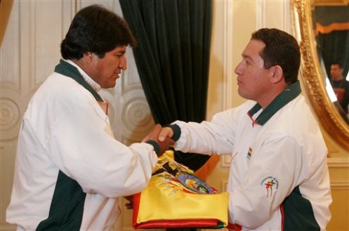 莫拉萊斯總統(tǒng)發(fā)表講話稱,體育是一種人權(quán),政府應(yīng)在促進(jìn)體育事業(yè)發(fā)展方面扮演重要角色。玻奧運代表團盡管人數(shù)不多,但很有代表性。他希望玻體育健兒在北京奧運會上展現(xiàn)出良好的精神風(fēng)貌,以優(yōu)異的表現(xiàn)帶動國內(nèi)體育事業(yè)的發(fā)展,同時與包括中國人民在內(nèi)的其他國家人民廣交朋友,促進(jìn)彼此間的友誼和相互了解。