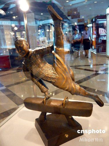 體操造型兵馬俑雕塑。中新社發 樊甲山 攝