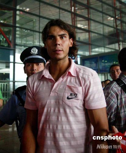 8月4日,有著“紅土之王”稱號的西班牙網(wǎng)球名將納達(dá)爾抵京,開始北京奧運會征程。中新社發(fā) 富田 攝