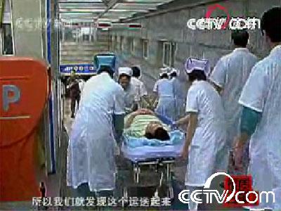 實際上發現 因為我們是地下車庫 它是很長的坡道,而且中間還有那個限速帶,那你這個傷員你又得不能夠慢慢推,又得比較快 你還不能顛,所以我們就發現這個運送起來實際上是一個非常困難的事,因為開始都是護士嘛,護士同志,女同志,她勁比較少。你要不演練真是發現不了,所以在以后演練,我們就改成除了護士之外,還增加工人,他們比較有力量 這樣一起來運,明顯的這個事情就改善多了