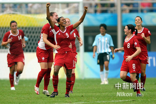 中新網8月6日電 今天下午17時,奧運會女足小組賽E組第1場比賽在天津奧體中心體育場舉行,阿根廷隊對陣加拿大隊。 在比賽進行到26分鐘時候,加拿大隊查普曼遠射進球!