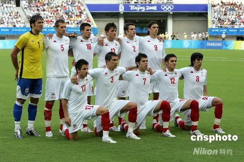 8月7日,北京奧運會上海足球分賽場男足預賽開賽,首場比賽由澳大利亞對陣塞爾維亞。中新社發 湯彥俊 攝