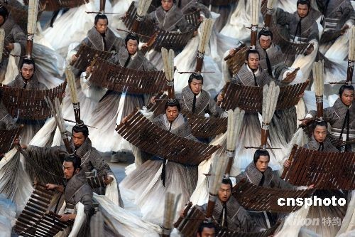 8月8日晚,第二十九屆奧林匹克運動會在北京開幕。由中國著名電影導演張藝謀指導的北京奧運會開幕式文藝演出節目中的核心部分——《美麗的奧林匹克》,全部內容圍繞一幅“中國古代畫卷”卷軸的開啟展開。中華漢字是世界上最古老的文字之一,古老的漢字承載著中華文明久遠而深邃的歷史,在這一篇章的表演中,展現了中國漢字的變化魅力。孔子的三千弟子手執竹簡漫漫歌頌,緩緩步入場地,經典名句響徹全場。中新社發 任晨鳴 攝