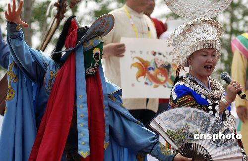 8月9日,大型文化展示活動《中國故事》在北京奧林匹克公園公共區正式開幕,中國各個地區的民俗演出精彩登場。中新社發 王東明 攝