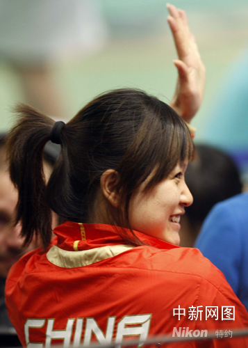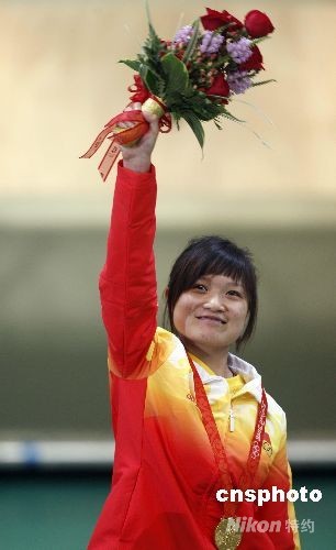 在剛剛結束的北京奧運會女子10米氣手槍決賽中,中國選手郭文珺奪得冠軍。這是中國軍團在本屆奧運會上獲得的第三塊金牌。中新社記者 盛佳鵬 攝