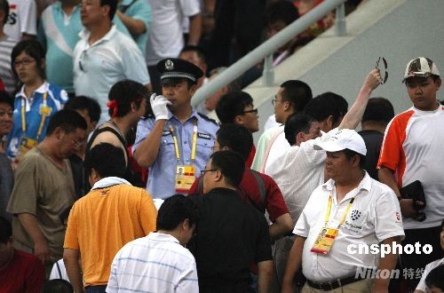 圖為中國隊失兩球,少兩名隊員的情況下,球迷提前退場。中新社發 張宇 攝