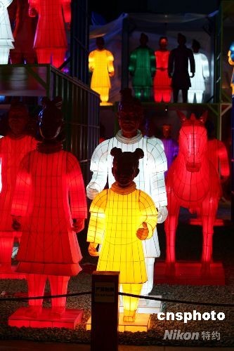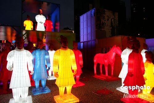 北京CBD內(nèi)充滿(mǎn)時(shí)尚感的世貿(mào)天階奧運(yùn)文化廣場(chǎng)上,102尊兵馬俑彩燈擺出氣勢(shì)恢弘的陣形。不是遠(yuǎn)自秦朝的陶土塑就,它們周身光彩奪目;不是身披鎧甲充滿(mǎn)殺氣,它們攜老扶幼,盡顯家庭歡樂(lè)。一個(gè)個(gè)燈彩透著歷史的深邃,也投身于眼前的奧運(yùn)狂歡。從即日起至8月24日,他們將以特殊的方式為人們講述中華文化的源遠(yuǎn)流長(zhǎng)。中新社發(fā) 富田 攝