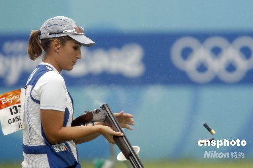 8月14日下午,北京奧運會女子飛碟雙向決賽在北京射擊場飛碟靶場舉行,世界杯總決賽冠軍中國選手魏寧無緣三甲名列第六。意大利選手基婭拉-卡伊內(nèi)羅通過單發(fā)決賽擊敗美國選手羅德-金伯莉和德國選手克里斯蒂娜-布林克爾,以93中獲得冠軍。 中新社發(fā) 盛佳鵬 攝